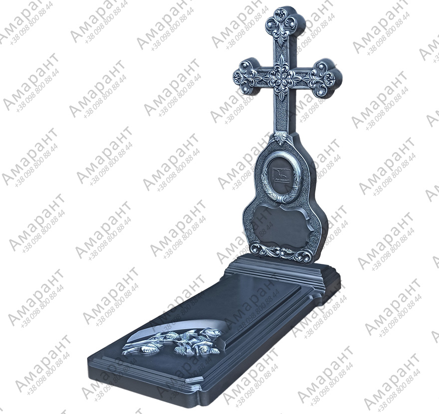 Памятник из бетона «Лира–Цветок-Графит» — надгробный памятник с крестом