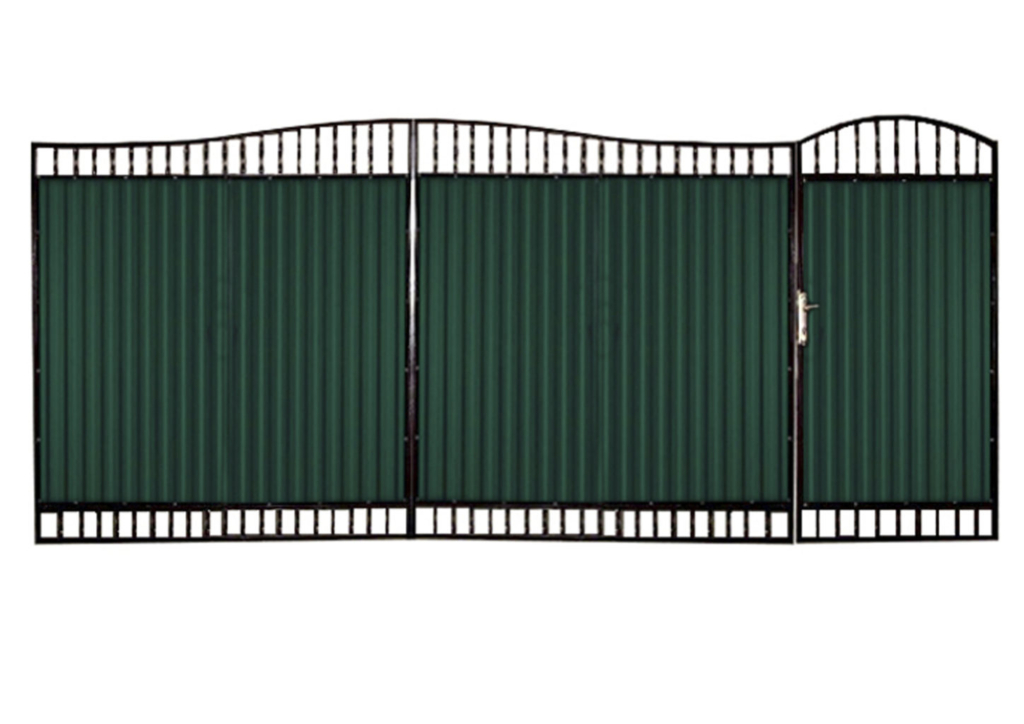 | — фиксация двух створов — скоба для навесного замка — засов на соединение ворот — грунтованные и окрашенные |