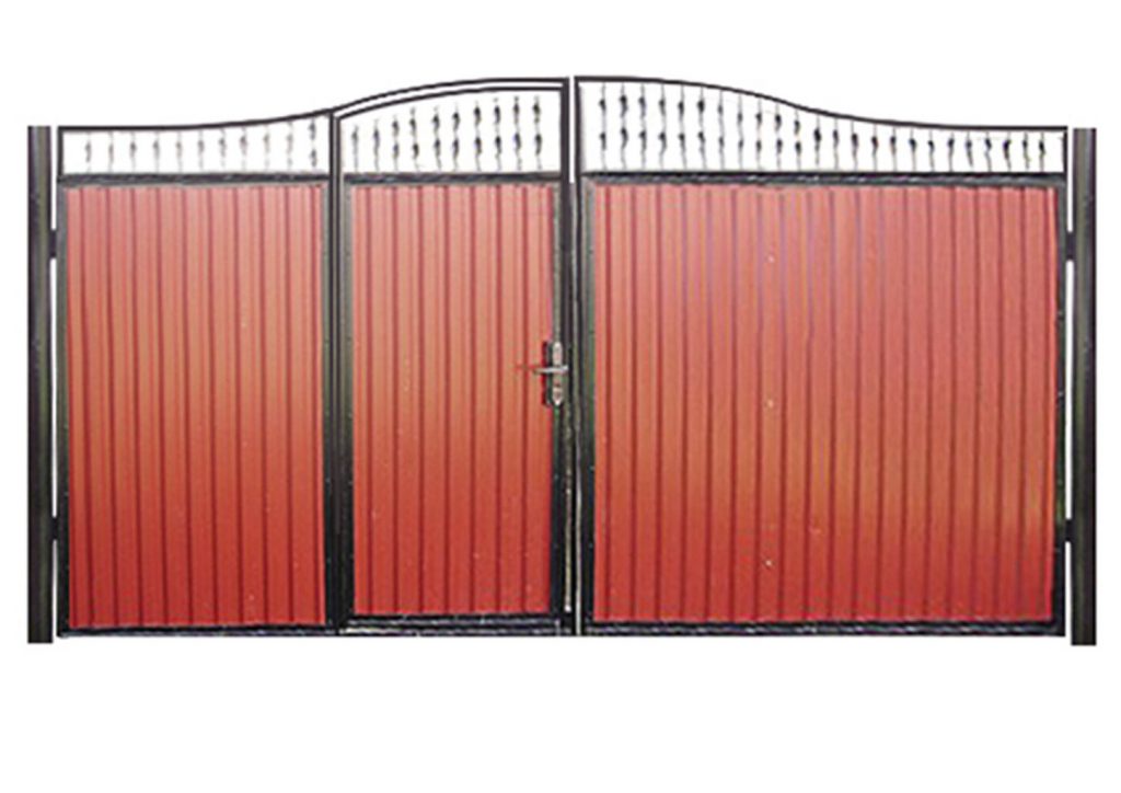 | — калитка в правой или левой части ворот — рекоммендованая ширина калитки 80 см — скоба для навесного замка — засов на соединение ворот — грунтованные и окрашенные — ручка на открытие и закрытие — механизм с ключами |