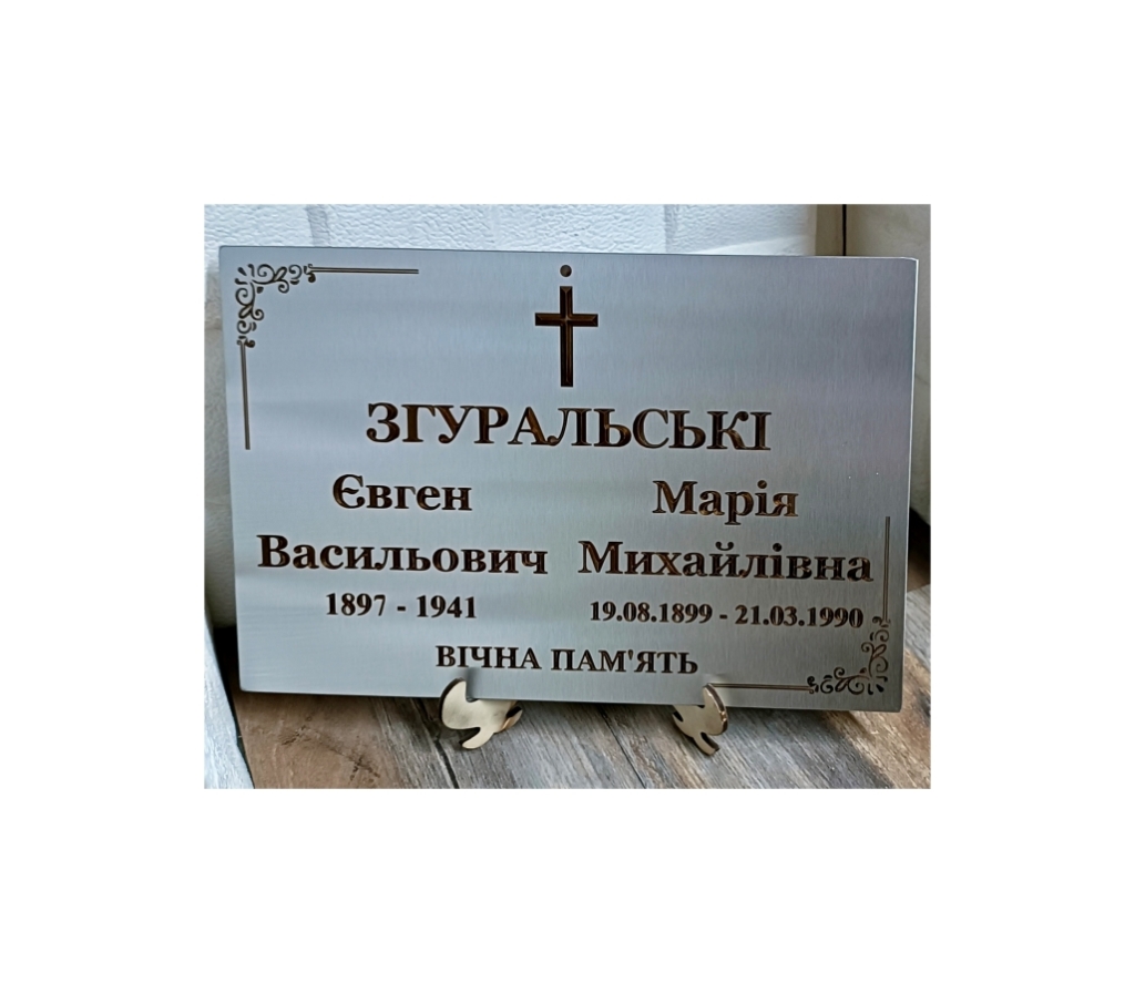 Ритуальная табличка на памятник из нержавеющей стали с лазерной гравировкой
