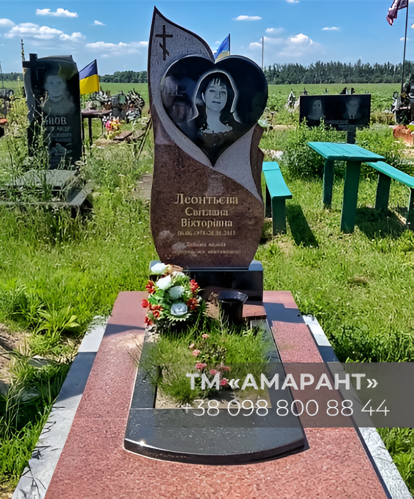 Памятник «АМАРАНТ» из лезниковского и чёрного гранита с фотоовалом в форме сердца №75