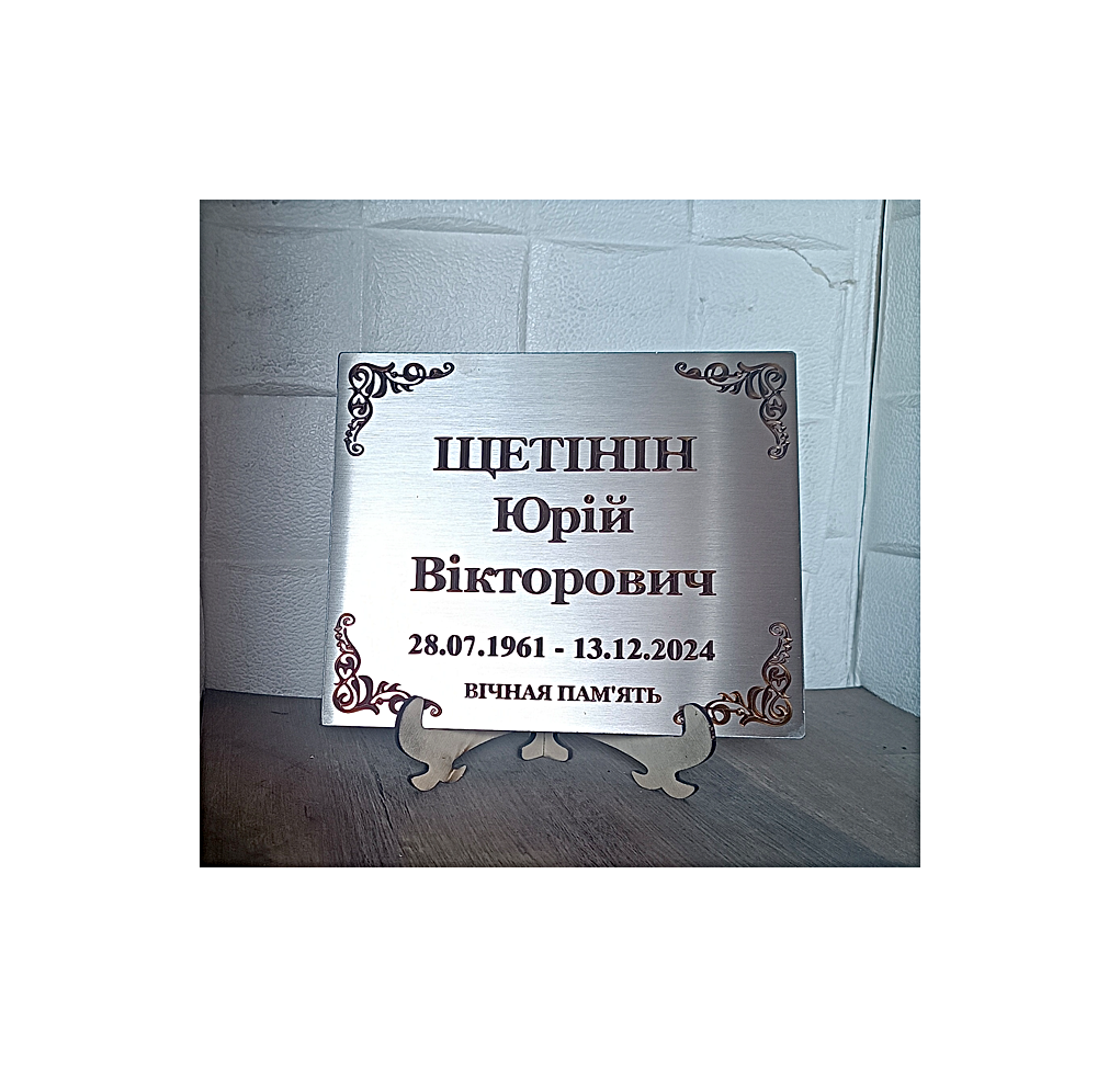 Мемориальная табличка из нержавеющей стали с гравировкой
