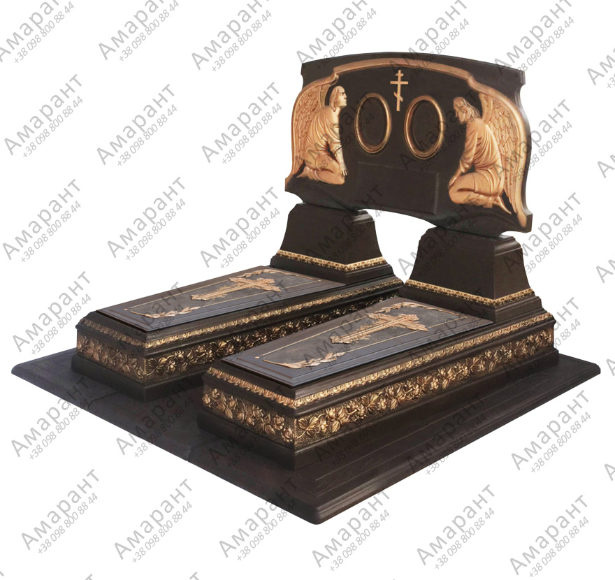 Подвійний бетонний пам’ятник «Роза Коричневий» з аркою та ангелами