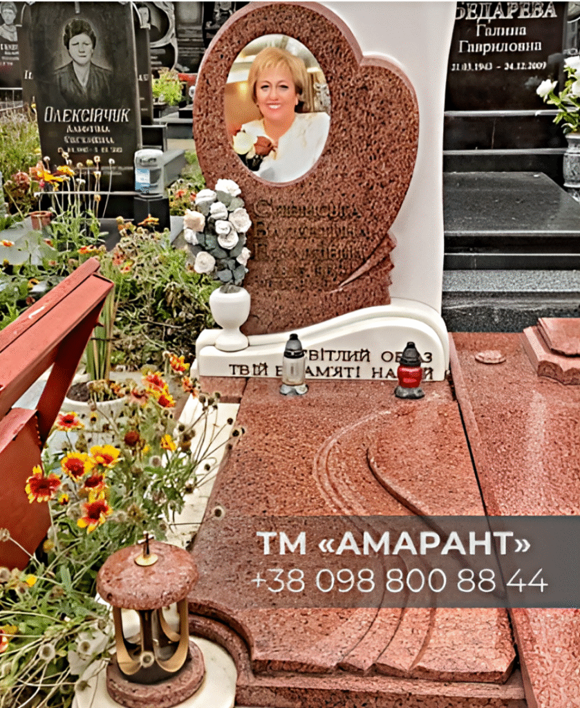 Пам’ятник АМАРАНТ із фотокерамікою у формі серця — це гідне рішення, яке допоможе висловити кохання, повагу та світлу пам’ять назавжди.